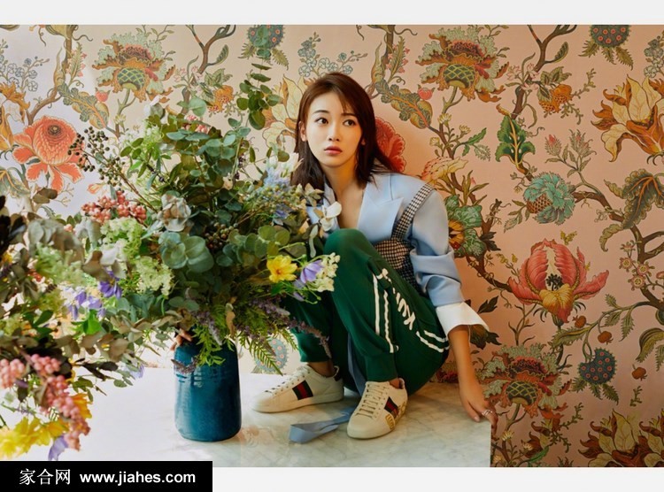 此次拍摄中,一套淡紫色针织短袖搭配白色高腰阔腿裤的造型,可谓“舒适与时尚并存”的典范。柔软的淡紫色衬托出她肌肤的白皙透亮,白色阔腿裤则拉长了整体线条,她随意盘坐,手捧鲜橙,在慵懒闲适中散发温柔治愈的甜妹氛围。这组造型打破了“时尚必须隆重”的刻板印象,展示了高级的时尚感同样可以源自生活化的舒适与清新色彩的魅力。